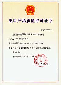 经国家铸造锻压机械质量监督检验中心的严格检验及安徽出入境检验检疫局的现场抽样检测 樱花视频网站,我司“中德”牌机床产品均符合出口质量许可制度规定的要求,于近日拿到了“出口产品质量许可证书”,为中德品牌打入国际市场迈出了坚实的一步。