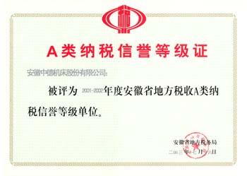 根据《安徽省地税系统纳税信誉等级管理试行办法》(皖地税[200]66号)等有关规定,税务部门按照纳税人申请,主管地税机关对纳税人2001年,2002年及2003年税务登记,纳税申报,税款缴纳 樱花视频网站,财务管理,纳税资料报送,发票管理等方面的严格审核,安徽中德机床股份有限公司被评为:2001—2002年度安徽省地方税收A类纳税信誉等级单位.