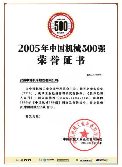 "樱花视频在线" 中德公司入围2005年《中国机械500强》