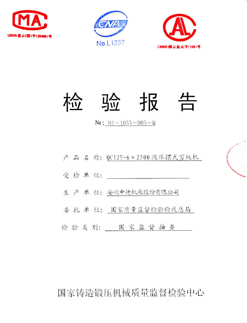 根据2006年第4季度剪板机国家监督抽查实施方案,受国家质量监督检验检疫总局委托,国家铸造锻压机械质量监督检验中心,于2006年9月23日,对本公司产中德牌液压摆式剪板机进行了现场检验,近日,我公司收到了本次抽检的结果通知单及检验报告,结果为:合格 樱花视频网站, 本次抽查也充分体现了,中德牌剪板机产品质量的稳定与可靠,中德产品在以后的发展过程中,将会以更加贴近客户的需求为己任,以制造客户值得买的产品为宗旨来不断提升产品的使用价值,最终实现与客户之间的双赢。