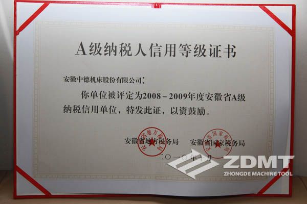 "樱花视频网站" 中德机床荣获“2008-2009年度安徽省A级纳税信用单位”荣誉称号