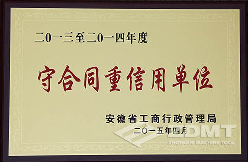 我公司荣获省2013-2014年度“守合同重信用单位”称号
